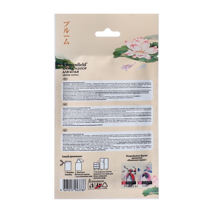 Ароматизатор-освежитель воздуха для белья, Greenfield «Цветок лотоса»