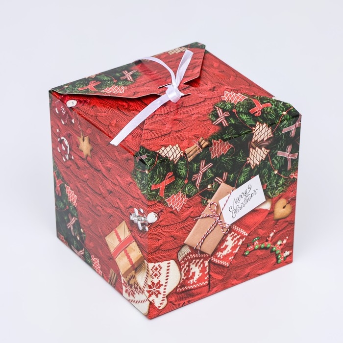Новый год. Коробка складная, подарочная новогодняя "Радость зимнего утра" 14 х 14 х 14 см.