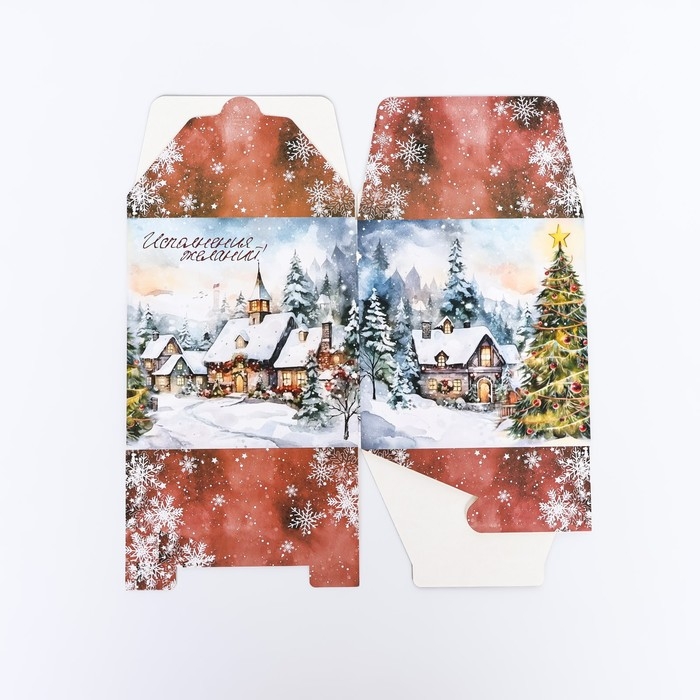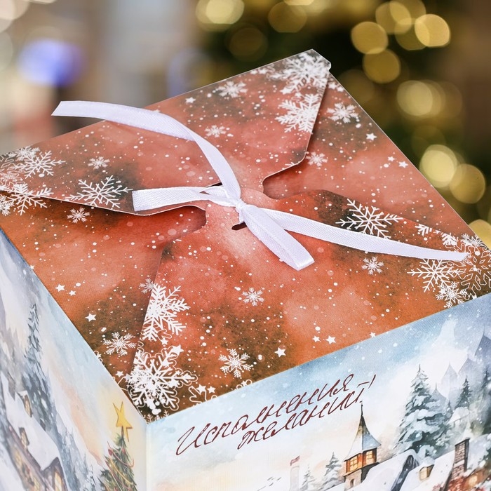 Новый год. Коробка складная, подарочная новогодняя "Исполнение желаний" 14 х 14 х 14 см.