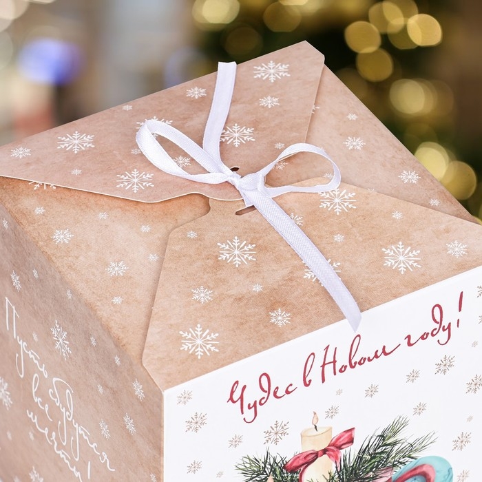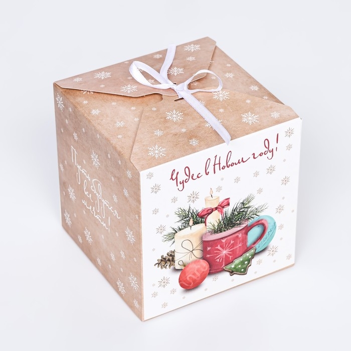 Новый год. Коробка складная, подарочная новогодняя "Чудес в новом году" 14 х 14 х 14 см.