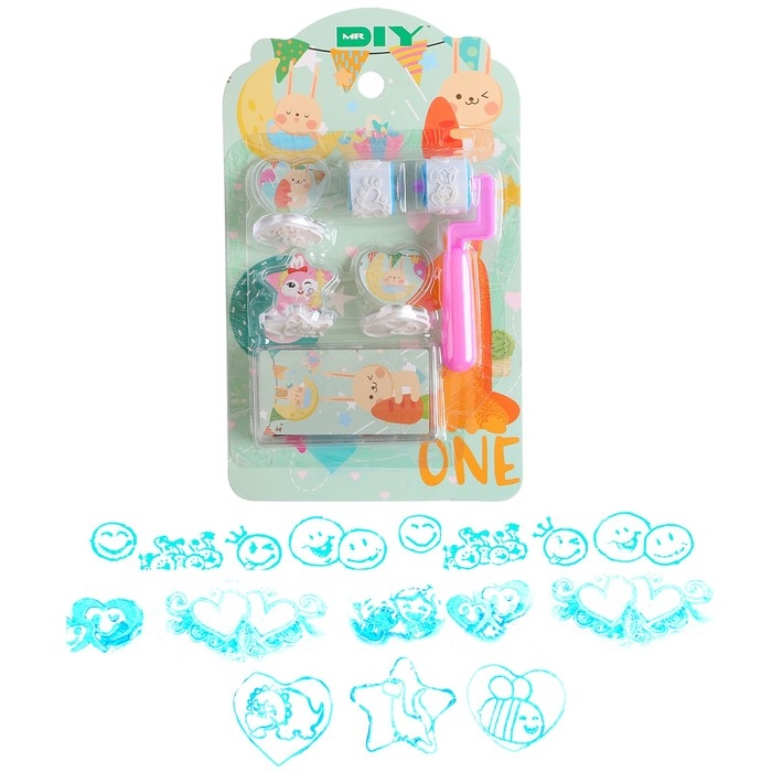 Печать цветная «Зайка», набор 3 шт., ролик-печать с 2 насадками, штемпельная подушка