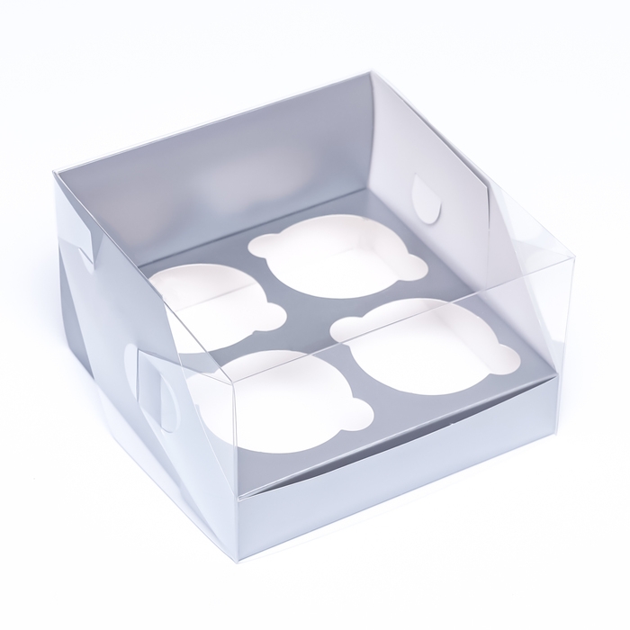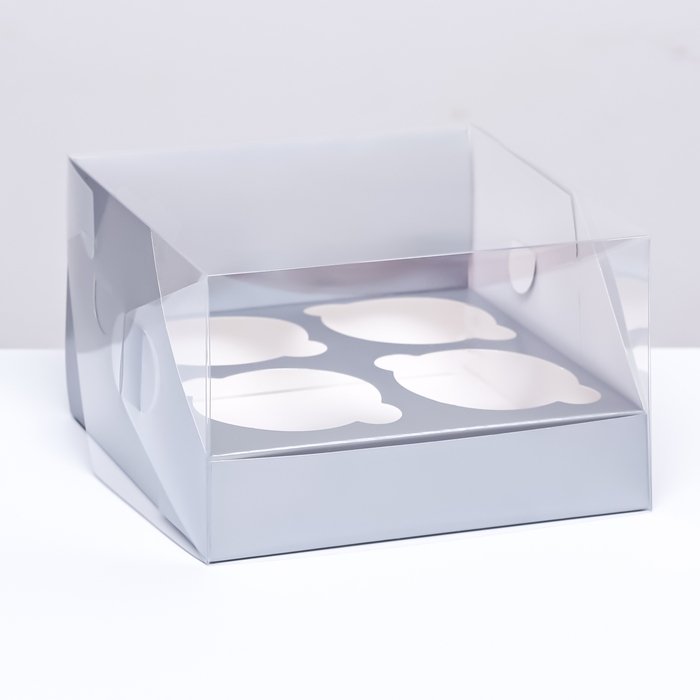 Коробка для 4 капкейков 16 х 16 х 10 , Серебро