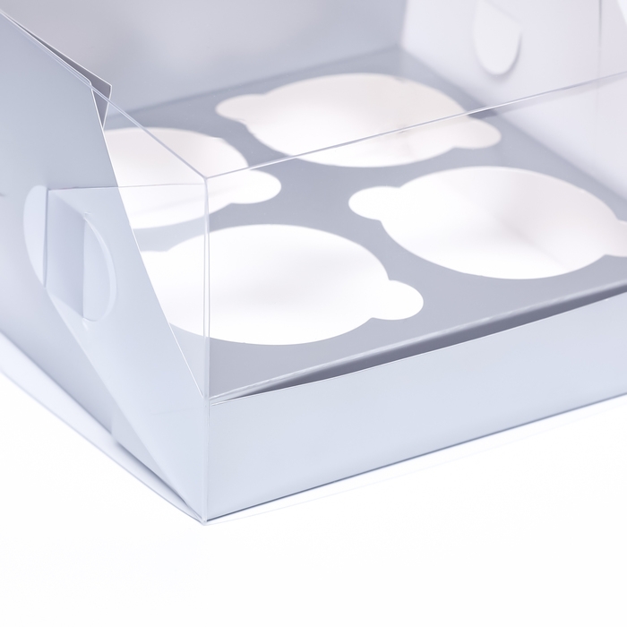 - Рассчитана на 4 капкейка - коробка оснащена специальными отделениями под каждый капкейк;