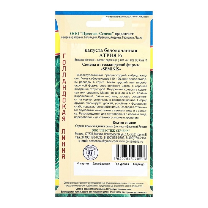 Семена Капуста белокочанная «Атрия F1», 10 шт., «Престиж семена»