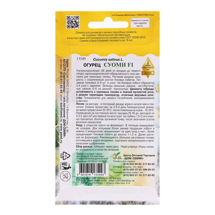 Семена Огурец "Суоми F1", 8 шт