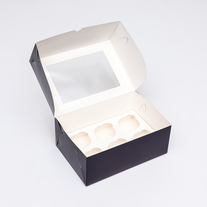 Коробка на 6 капкейков с окном, крафт, 25 х 17 х 10 см