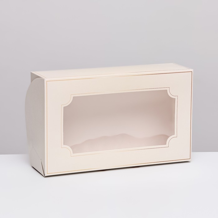 Коробка складная с окном под зефир "Золотой бант", 25 х 15 х 7 см