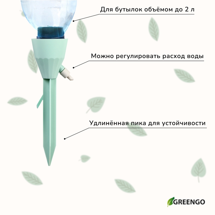 Автополив для комнатных растений, под бутылку, регулируемый, с краном, из пластика, высота 17,5 см, МИКС, Greengo
