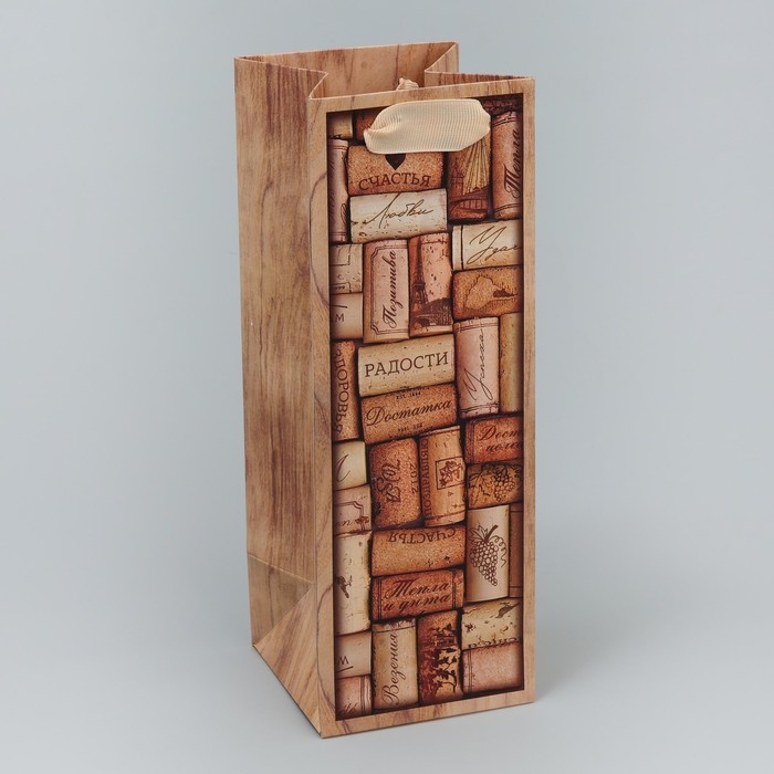 Пакет подарочный под бутылку, упаковка, «Радости», 9 х 25 х 8.9 см