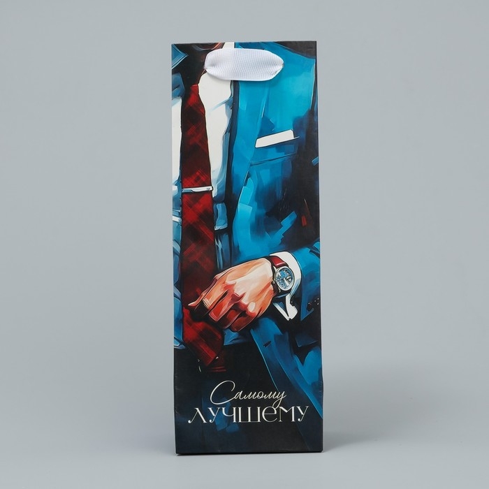 Пакет подарочный под бутылку, упаковка, «Лучшему», 9 х 25 х 8.9 см