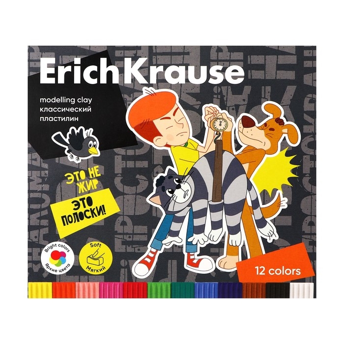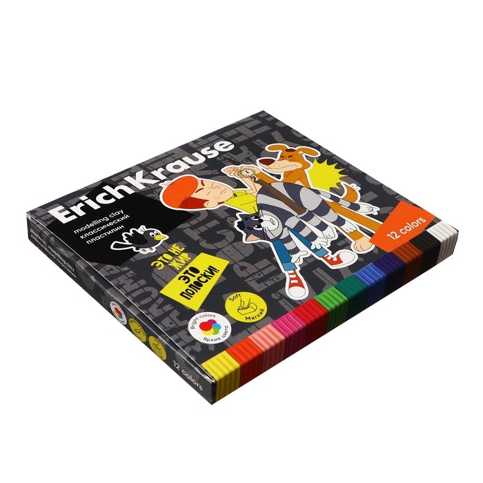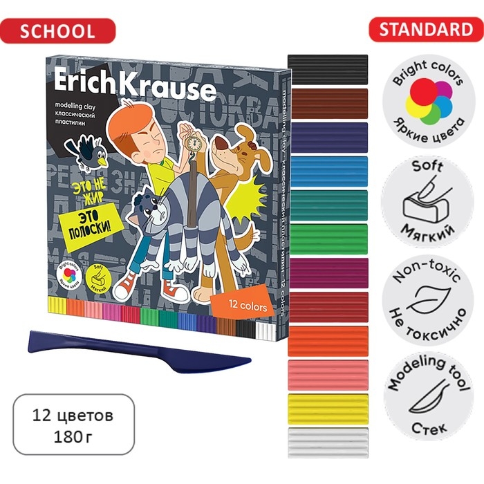 Пластилин 12 цветов, 180 г, ErichKrause "Простоквашино", со стеком, в картонной упаковке