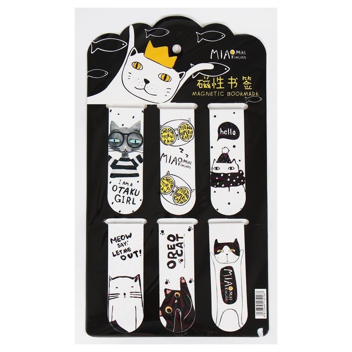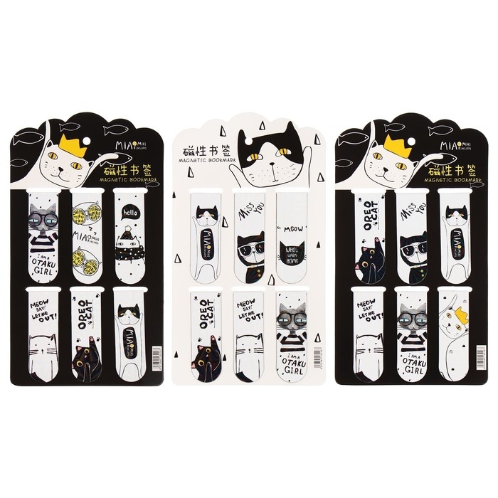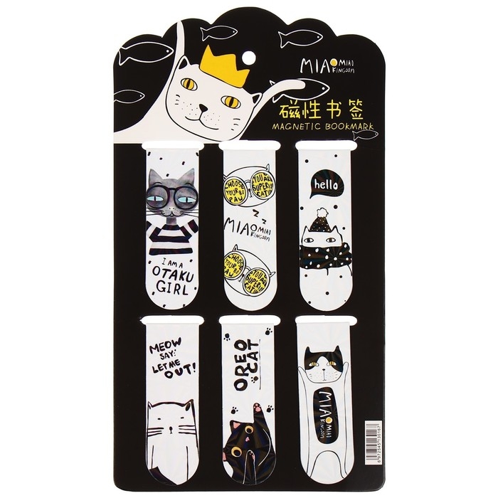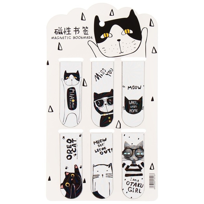 Набор магнитных закладок для книг Calligrata 6 штук, "Кошки", МИКС