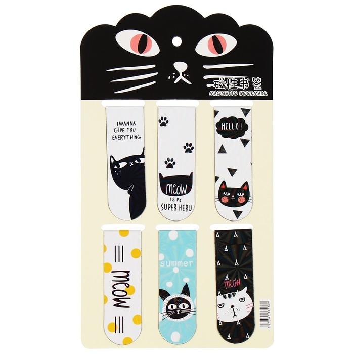Набор магнитных закладок для книг Calligrata 6 штук, "Кошки", МИКС