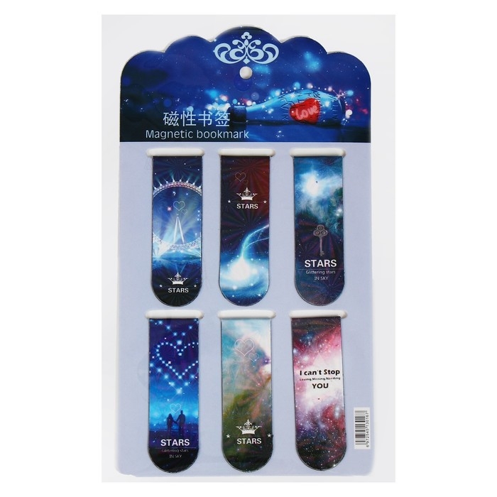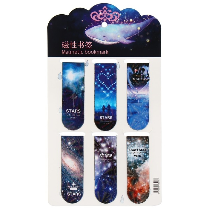 Набор магнитных закладок для книг Calligrata 6 штук, "Вселенная", МИКС