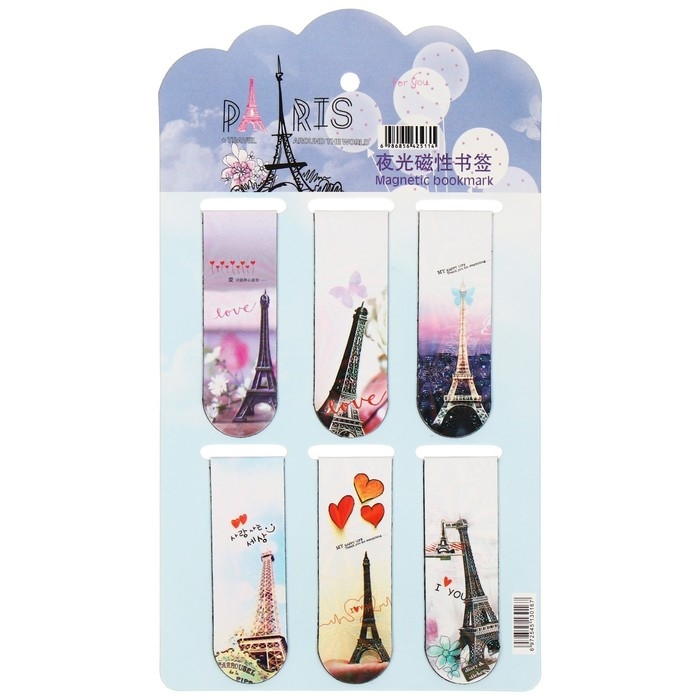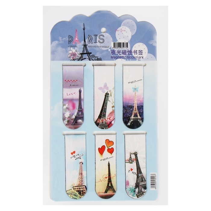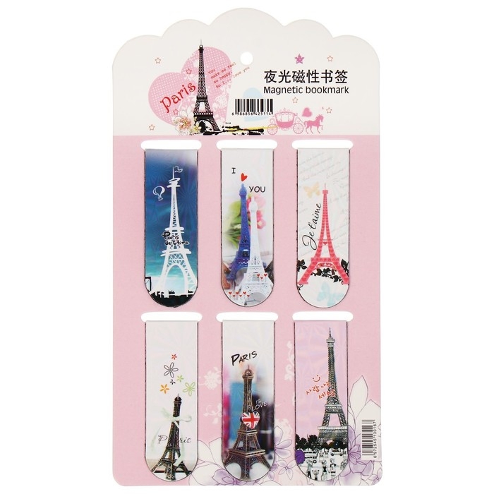 Набор магнитных закладок для книг Calligrata 6 штук, "Эйфелева башня", МИКС