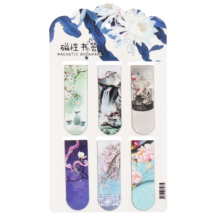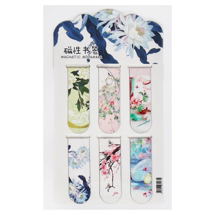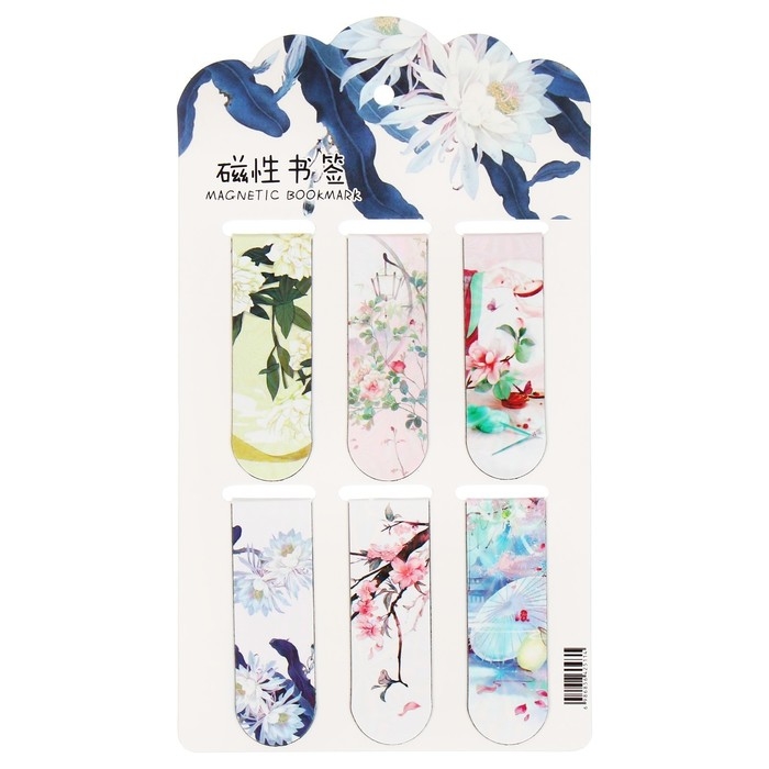 Набор магнитных закладок для книг Calligrata 6 штук, "Цветы", МИКС