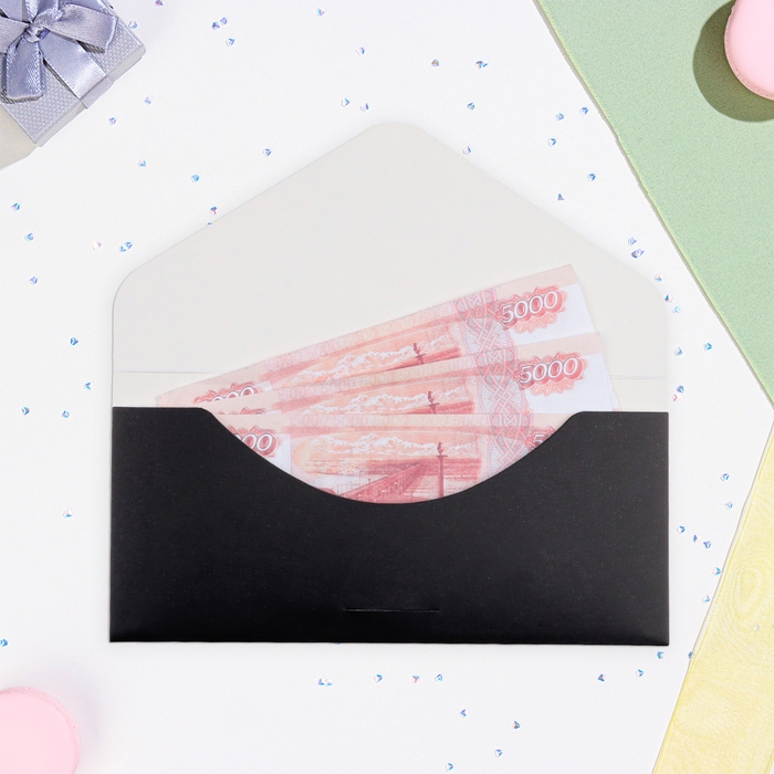 Конверт для денег "Поздравляю!" золото на черном, тиснение, 16,5 х 8 см