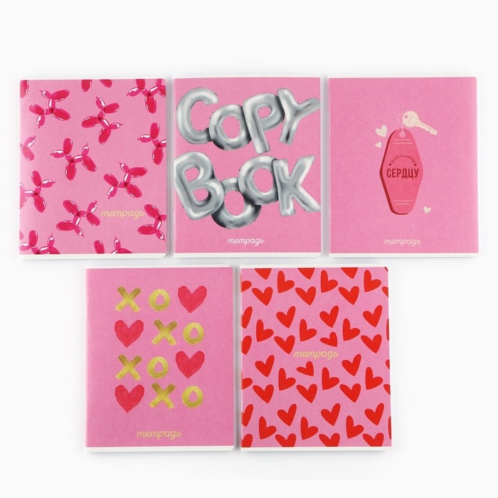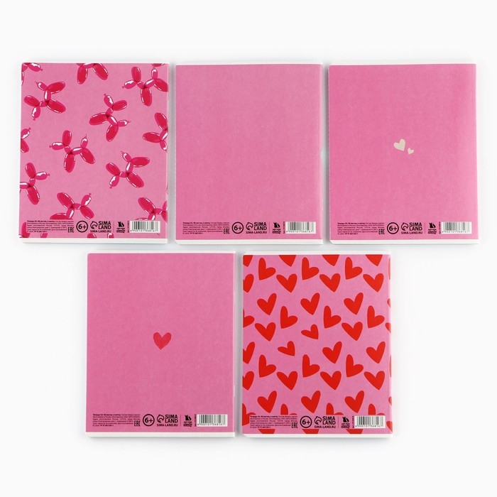 Комплект тетрадей из 5 штук, 48 листов в клетку Calligrata "Любимые питомцы", обложка мелованная бумага, блок №2, белизна 75% (серые листы)