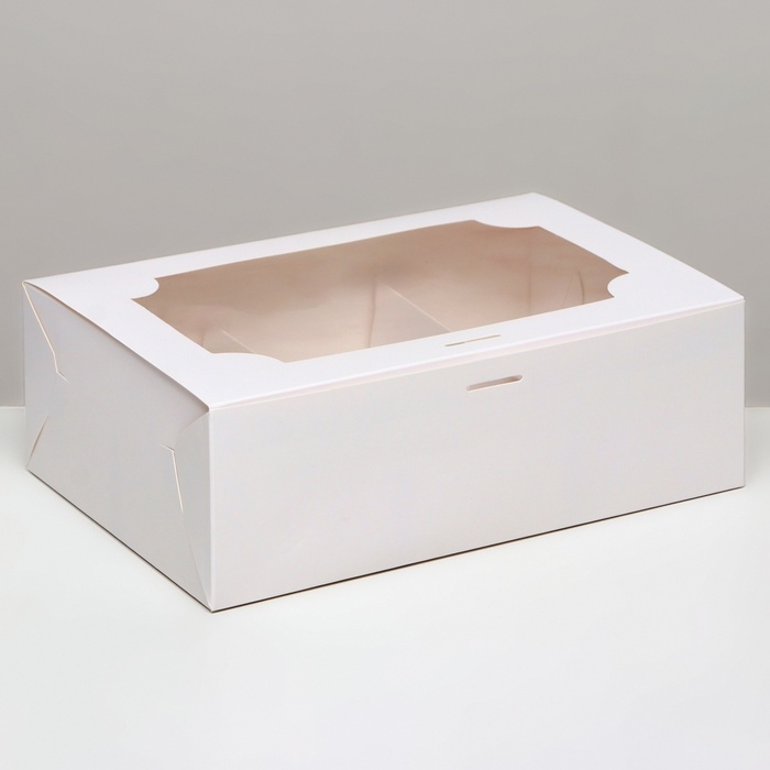 Упаковка на 6 капкейков без окна, белая 25 х 17 х 10 см