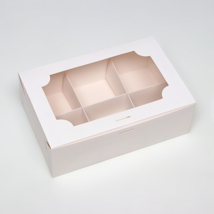 Коробка для 6 пирожных , белая , 24 х 16 х 8