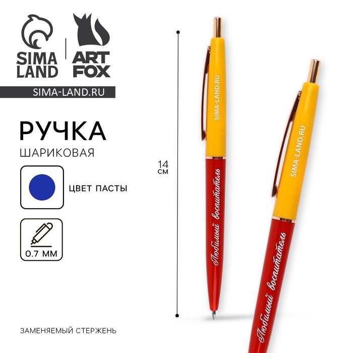 Ручка шариковая пластик автоматическая «Воспитателю: Любимый воспитатель» синяя паста 0.7 мм