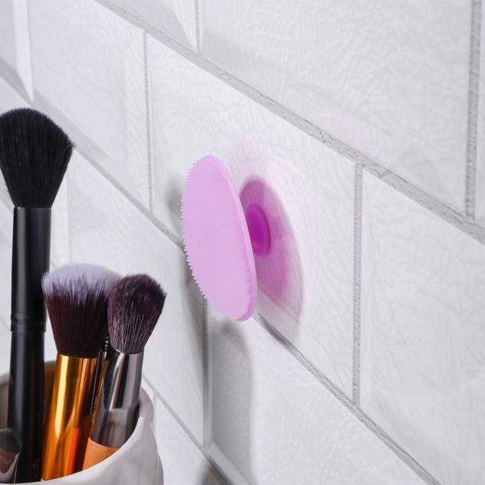 Щётка для умывания «Круг», на присоске, d = 5,5 см, цвет сиреневый