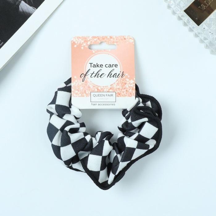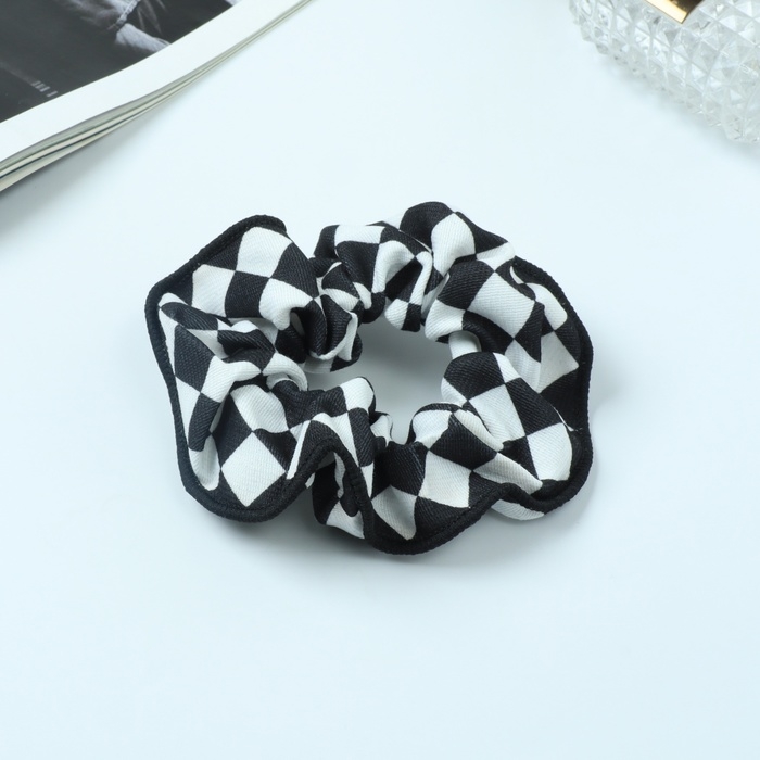 Резинка для волос "Орбита" шахматка тонкие края, 9 см, чёрно-белый