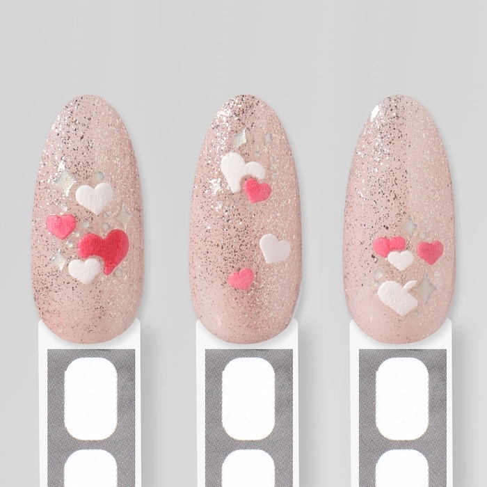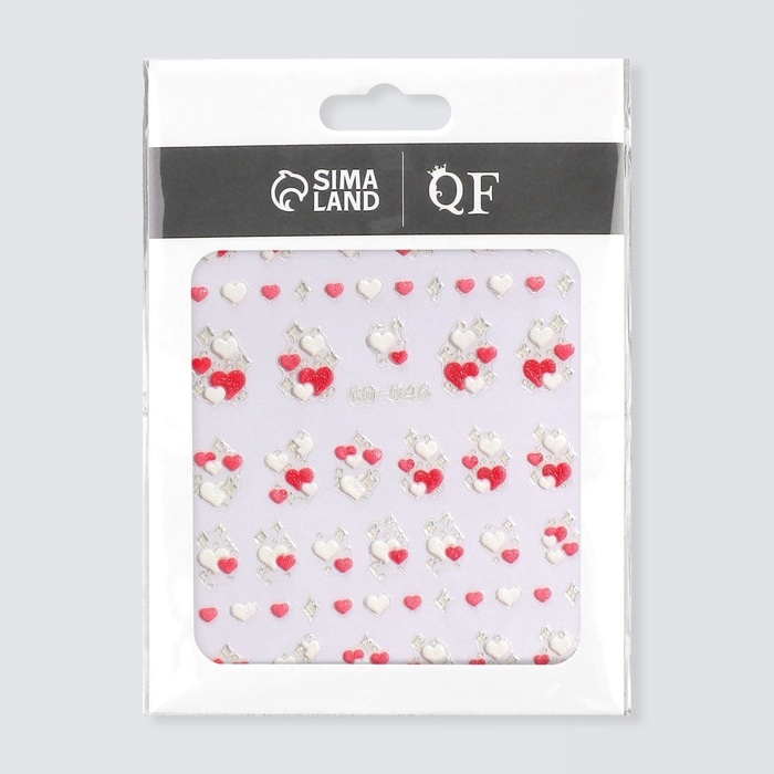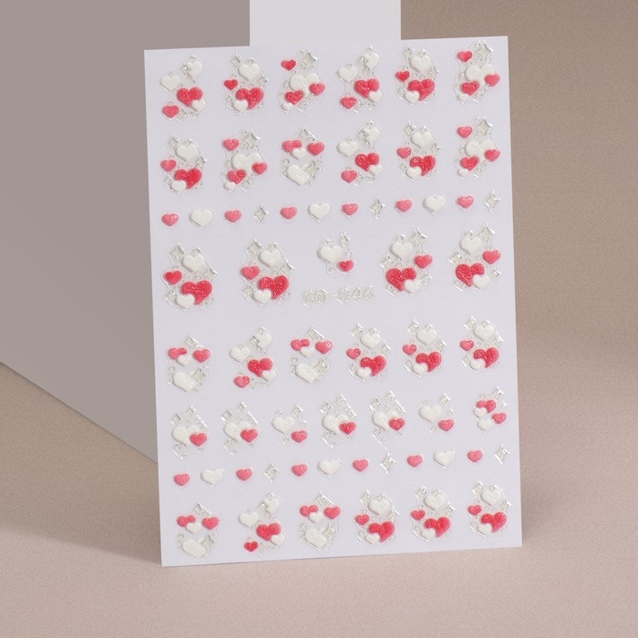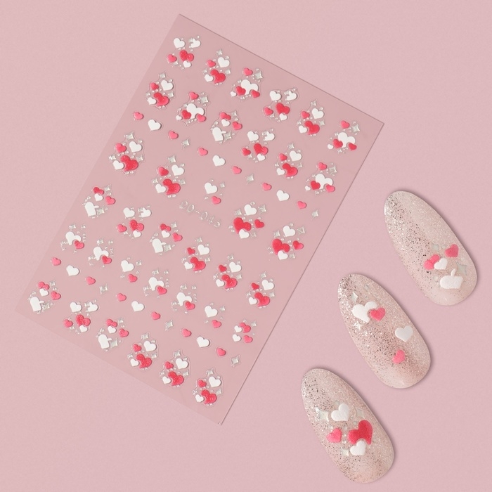 Наклейки для ногтей «Сердечки», объемные, цвет красный/белый