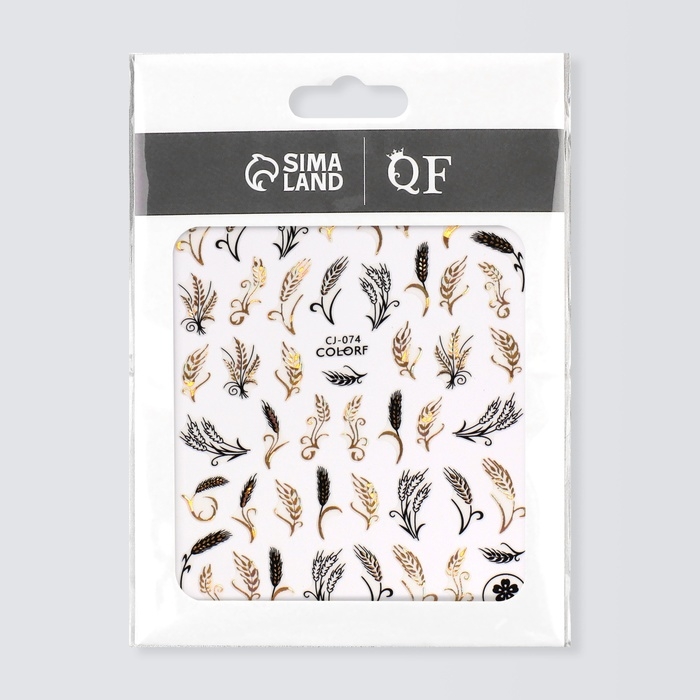Наклейки для ногтей «Колосья», фольгированные, цвет золотистый/черный