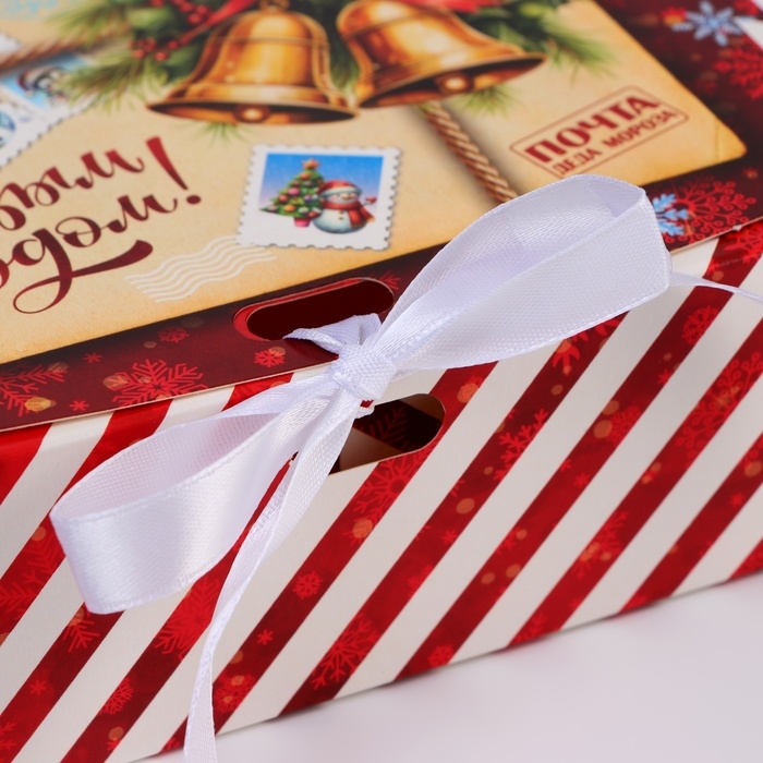 - Коробка выполнена в ярких новогодних цветах, что придает ей праздничный вид.