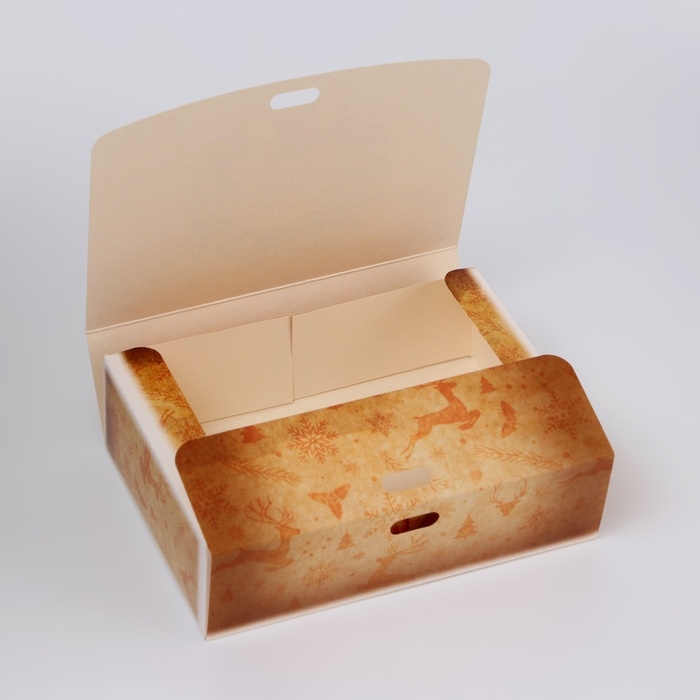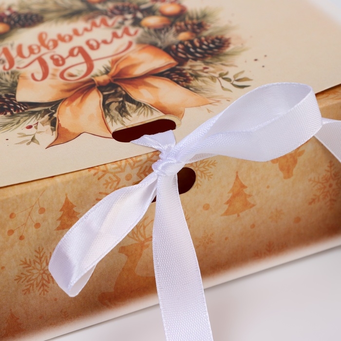 Новый год. Коробка подарочная новогодняя складная, упаковка, «Олени и снежинки», 16 × 12 × 5 см.