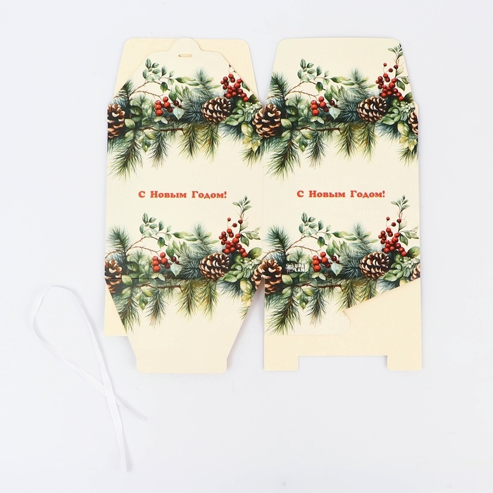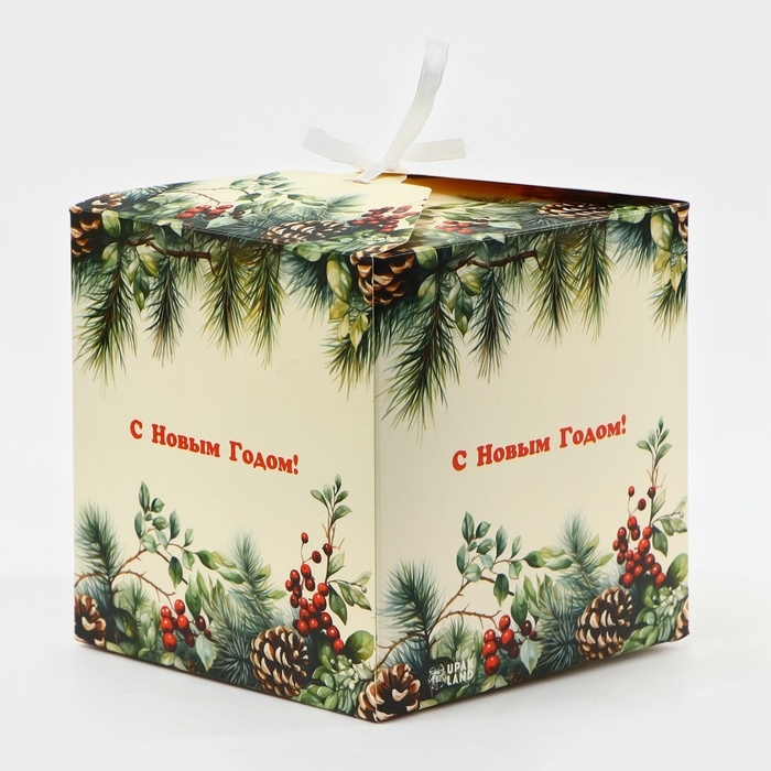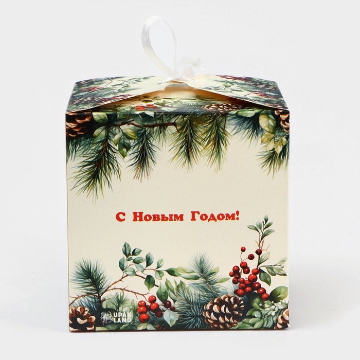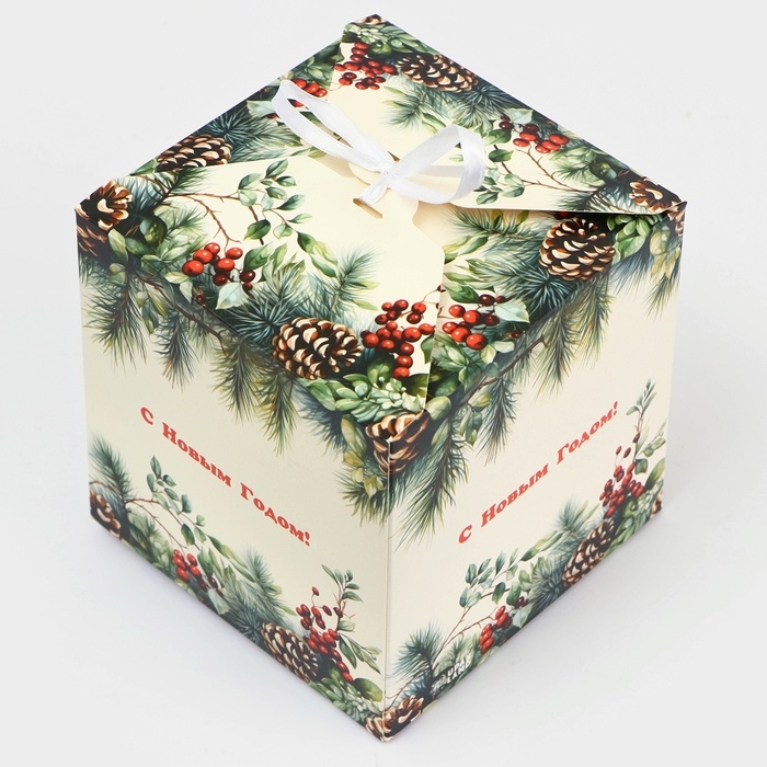 Новый год. Коробка складная, подарочная новогодняя "Еловая веточка" 14 х 14 х 14 см.