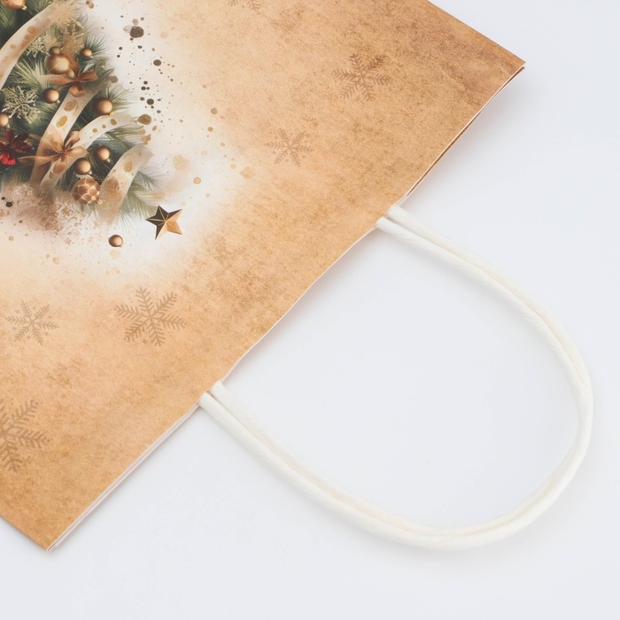 Новый год. Пакет бумажный подарочный новогодний крафт "Ёлка" 27 х 21 х 11 см.