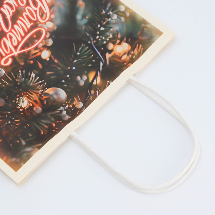 - Новогодний подарочный пакет с ярким, красочным рисунком создаст праздничное настроение.