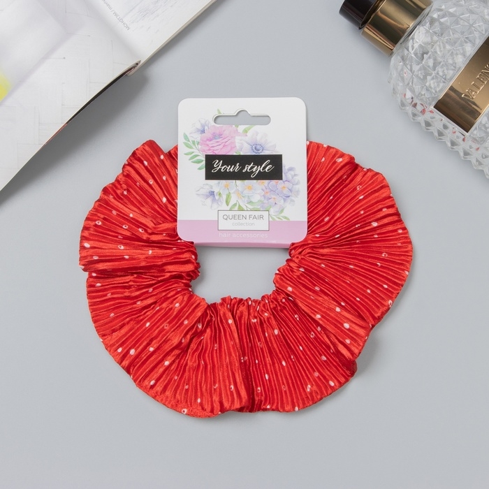 Резинка для волос "Орбита" жатка крапинки, 12 см, красный