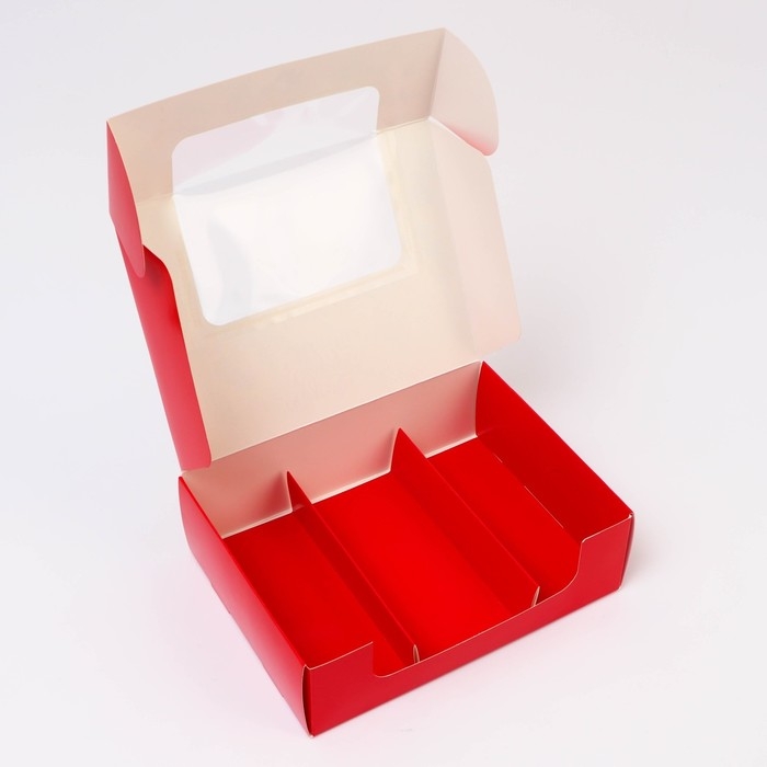 Складная конструкция позволяет легко собрать коробку, что делает её удобной для хранения и быстрой упаковки. Внутренние разделители или вставки надежно фиксируют эклеры, предотвращая их повреждение и сохраняя аккуратный вид. Прочные стенки защищают десерты от внешних воздействий и сохраняют их свежесть.
