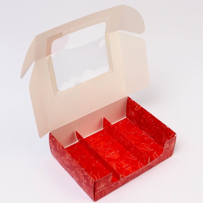 Складная конструкция позволяет легко собрать коробку, что делает её удобной для хранения и быстрой упаковки. Внутренние разделители или вставки надежно фиксируют эклеры, предотвращая их повреждение и сохраняя аккуратный вид. Прочные стенки защищают десерты от внешних воздействий и сохраняют их свежесть.