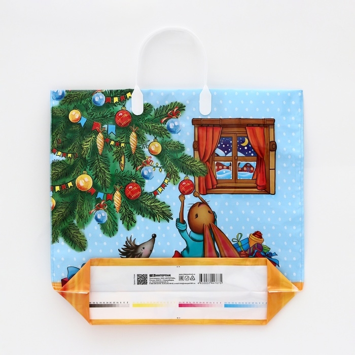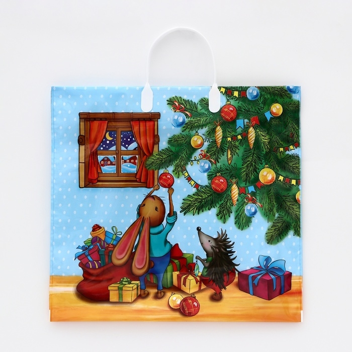 Новогодний полиэтиленовый пакет с пластиковыми ручками — это стильное и практичное решение для упаковки праздничных подарков.