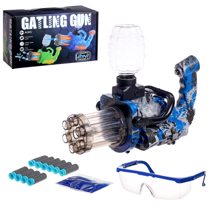 Бластер "Миниган", стреляет мягкими и гелевыми пулями, работает от аккумулятора