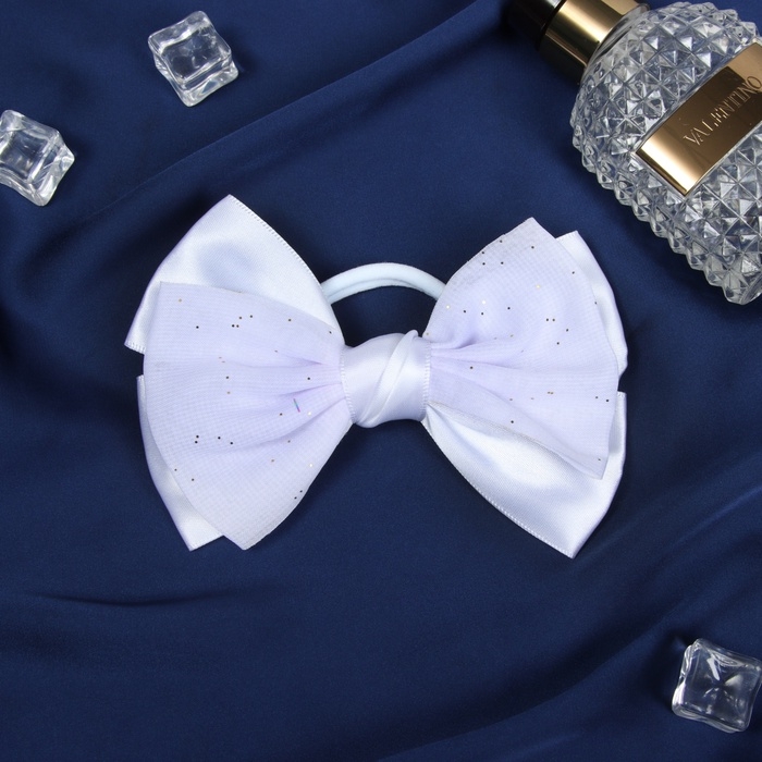 Резинка для волос "Школьница стиль" классика крапинки, 12 см, белый