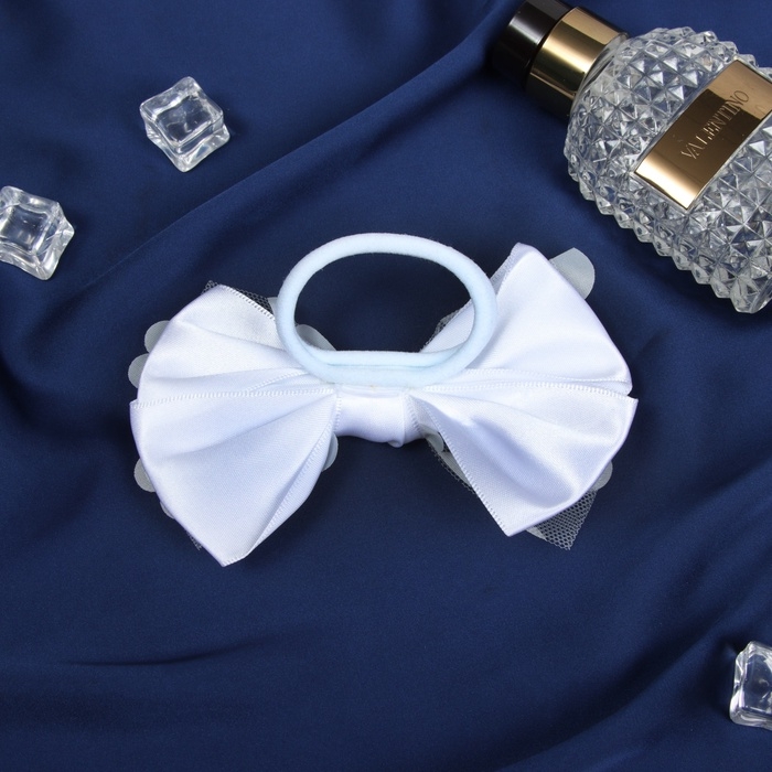 Резинка для волос "Школьница стиль" цветы, 12 см, белый