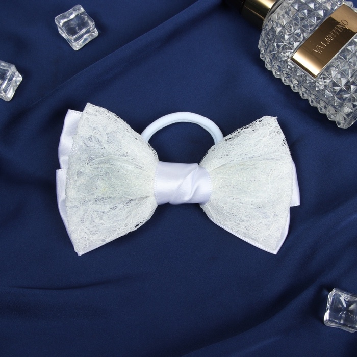 Резинка для волос "Школьница стиль" кружево классика, 12 см, белый