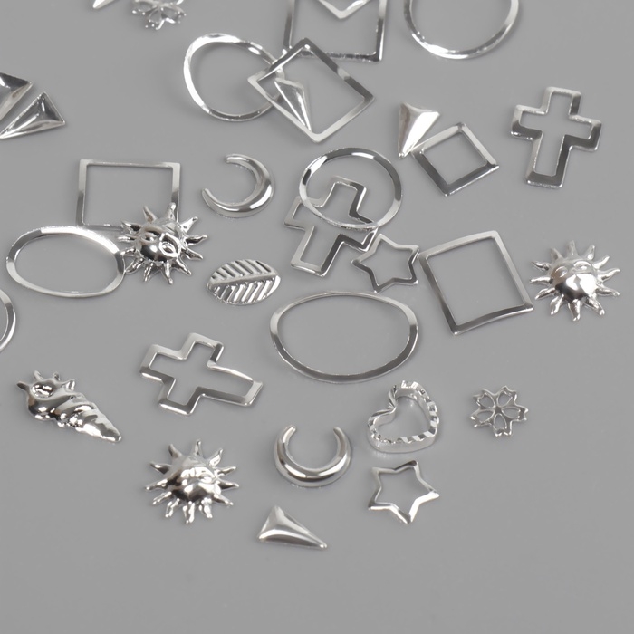 Фигурки для дизайна ногтей, объёмные, металлические, цвет серебристый