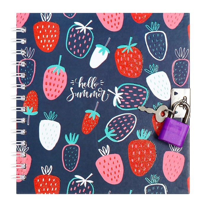 Записная книжка подарочная, 45 листов, линия, на замке, на гребне, Клубника (13х13,5см)