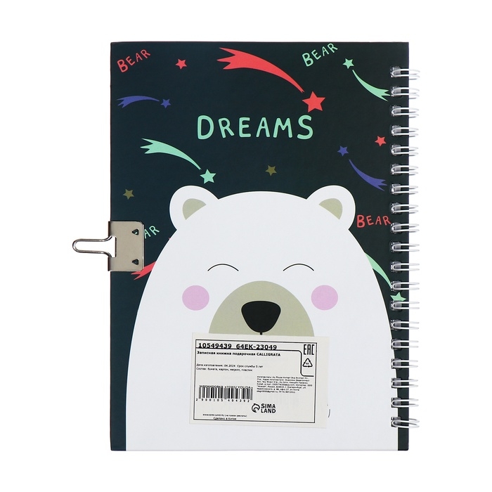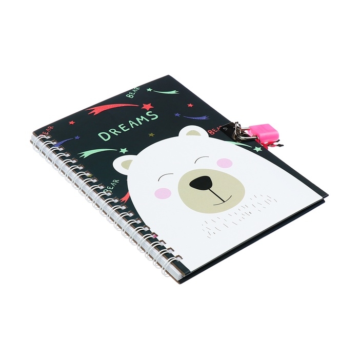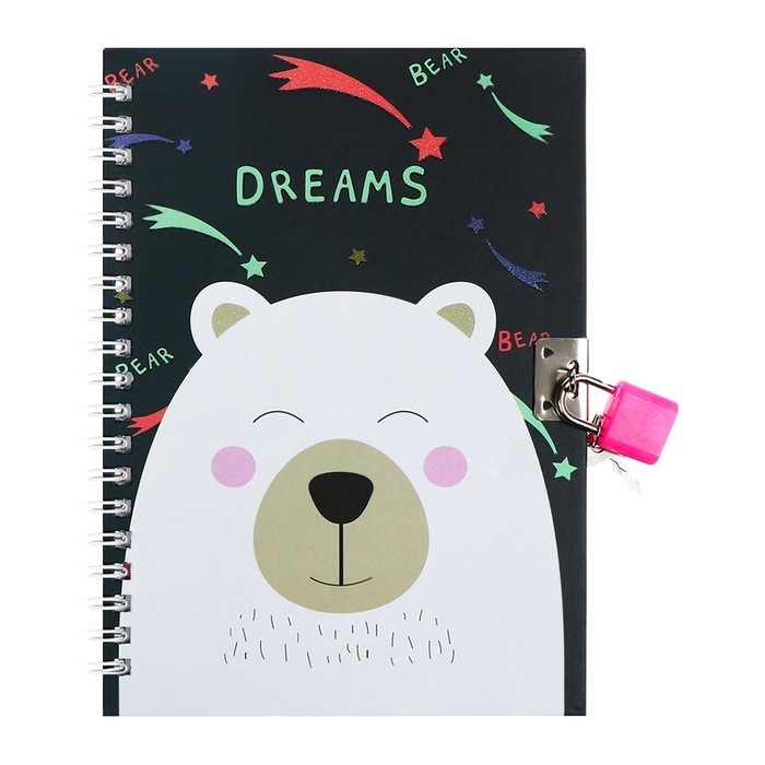 Записная книжка подарочная, 45 листов, линия, на замке, на гребне, Мишка белый (17,8х13см) 1054943