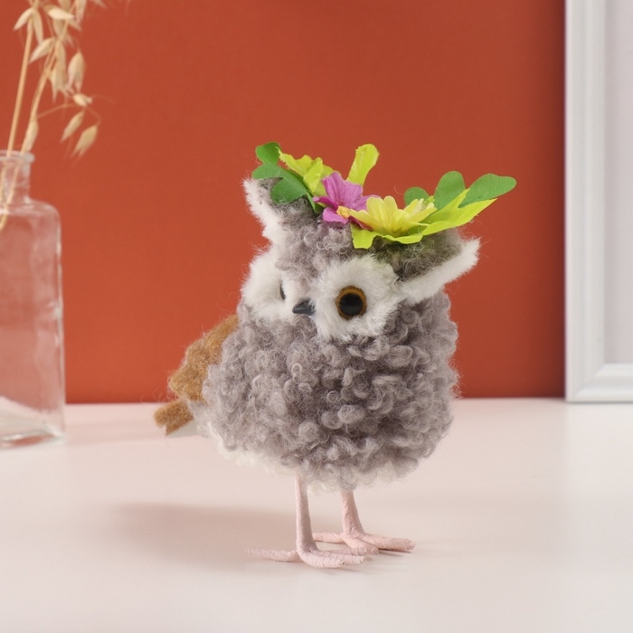 Декор "Кудрявая совушка с цветами" 12х9х17 см