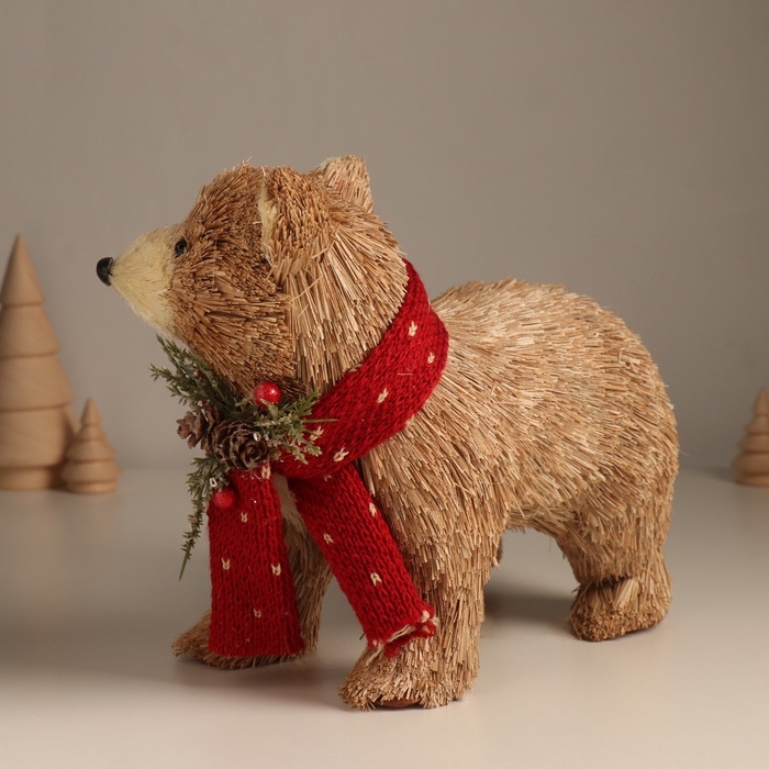 Декор "Медведь в вязаном шарфике с шишками и ягодками" 12х22х19 см