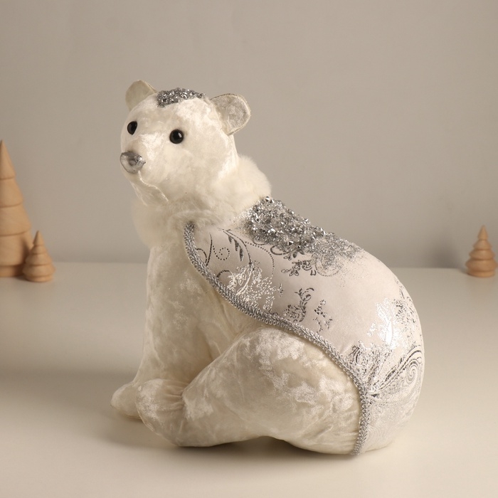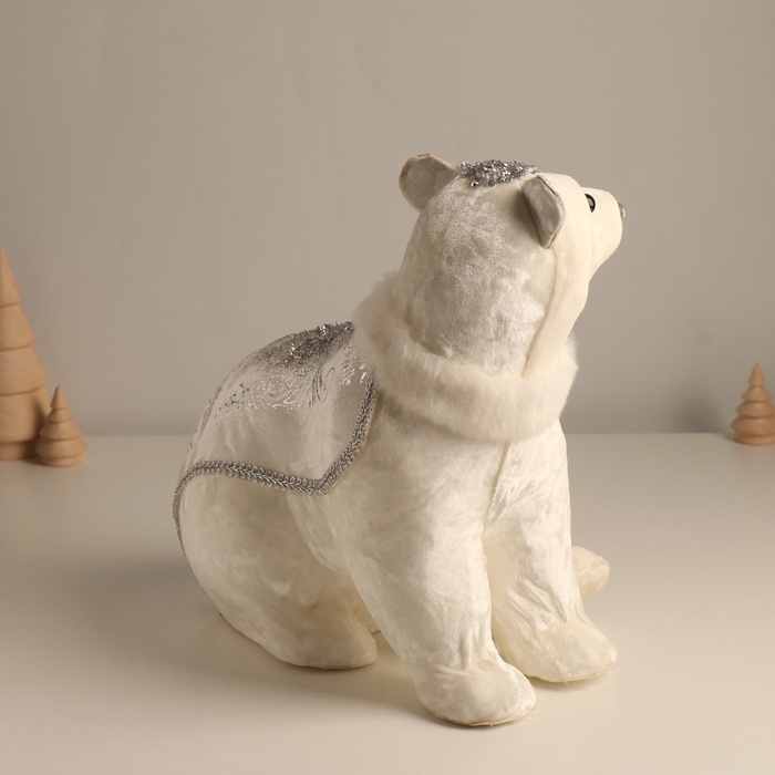 Декор "Белый мишка в накидке с серебристыми узорами" 22х16х24 см