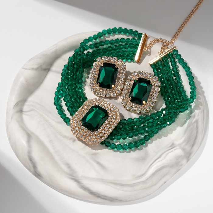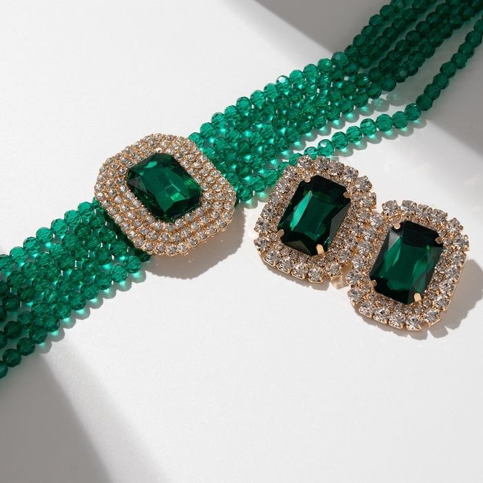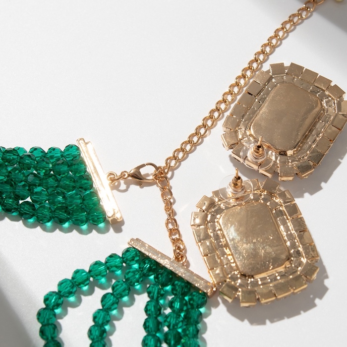 Набор 2 предмета; серьги, колье «Роскошь» крупный камень, цвет зелёный в золоте, 42 см