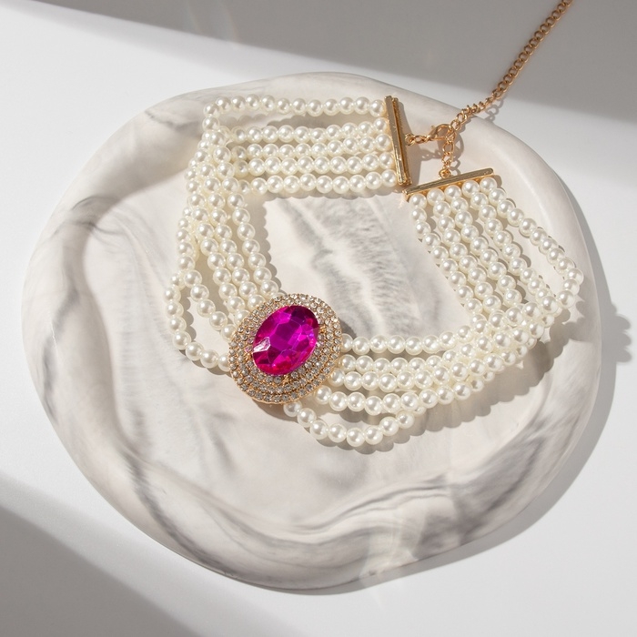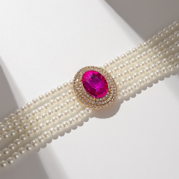 Чокер-колье «Роскошь» жемчужое, розовый в золоте, 30,5 см